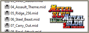 This archive contains .midi versions of most of the tracks from Metal Slug: 1st Mission and 2nd Mission.